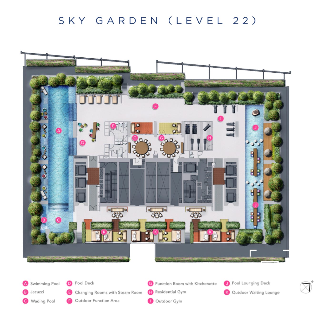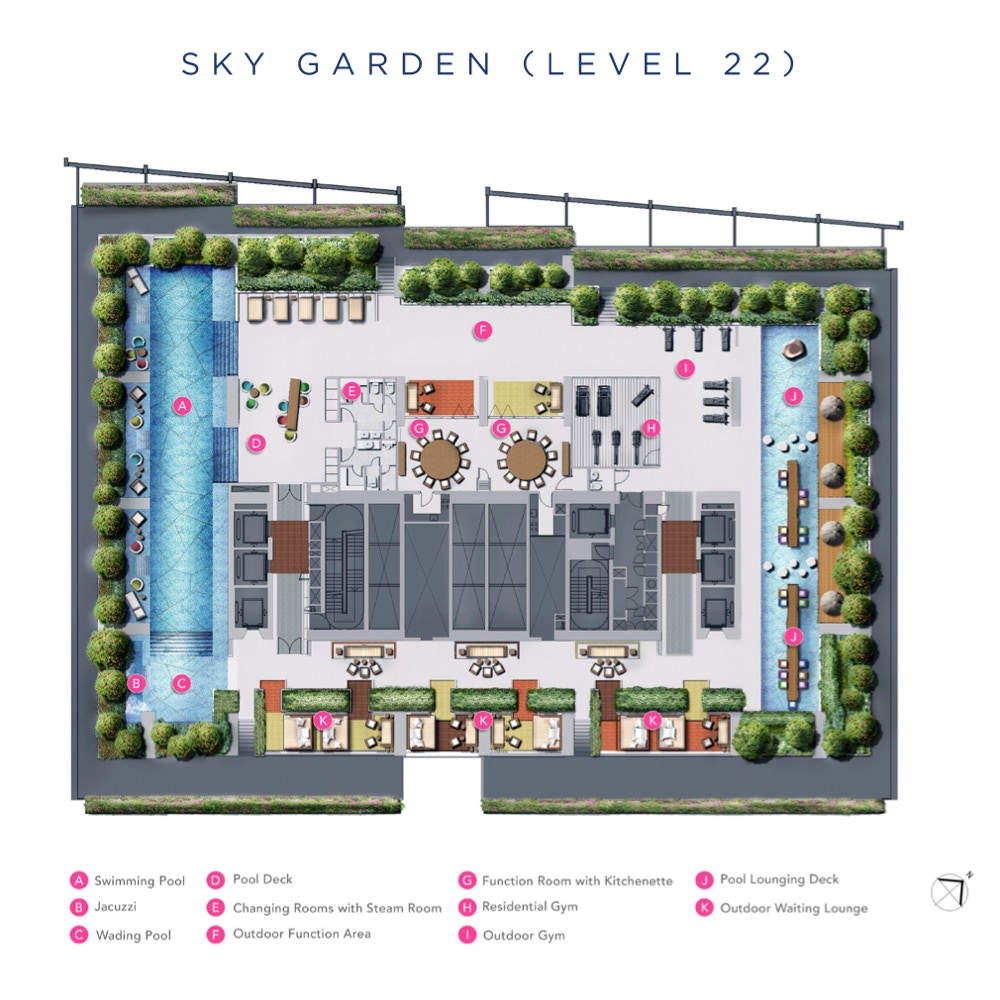Get away from the bustle high above the city. Find retreat and recreation at the two Sky Gardens located on levels 22 and 32.